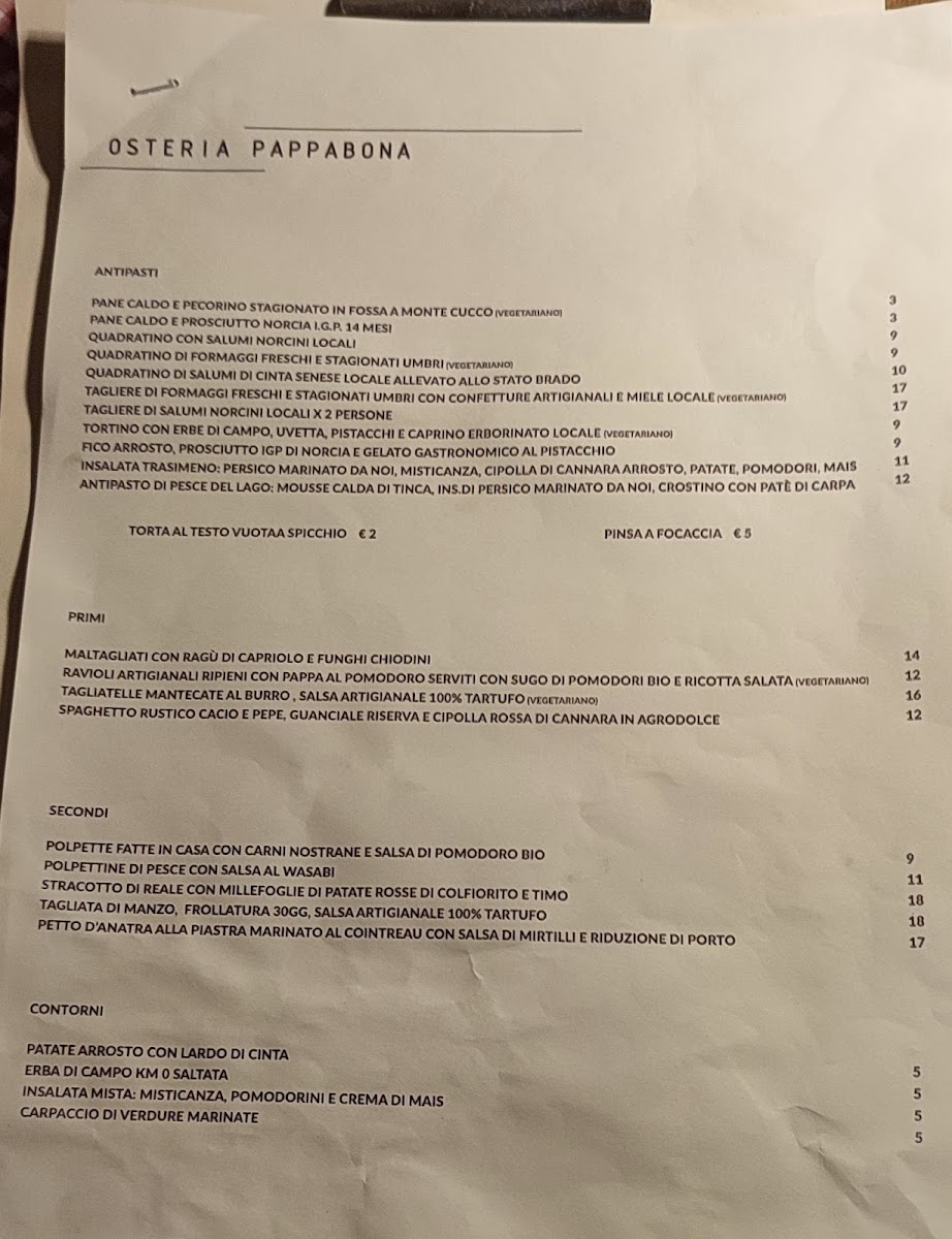 At the heart of Perugia, nestled in the charming Piazza della Repubblica, you'll find the inviting atmosphere of Osteria Pappabona Menu. This delightful eatery offers a rich taste of authentic Italian cuisine with a modern twist, drawing inspiration from the vibrant traditions of Umbria. From the moment you glance at the menu, you'll be greeted by an array of mouthwatering options, each crafted with the freshest, locally sourced ingredients. Whether you're in the mood for a hearty pasta dish or a perfectly cooked meat selection, there's something to satisfy every craving. The simplicity of the flavors is what makes each dish special, allowing the quality of the ingredients to shine through. Enjoy a glass of local wine alongside your meal and let the ambiance of this charming corner of Italy set the perfect tone for an unforgettable dining experience.